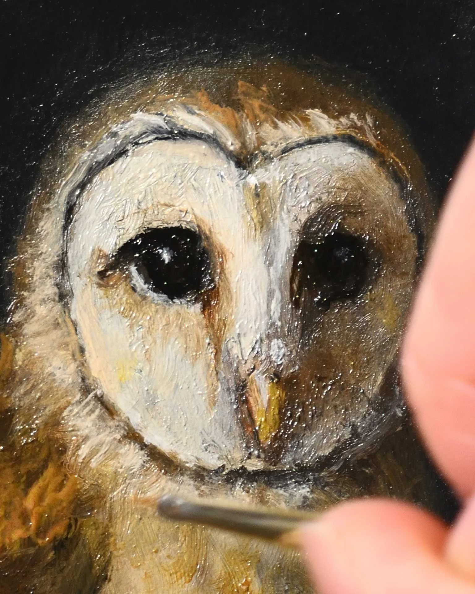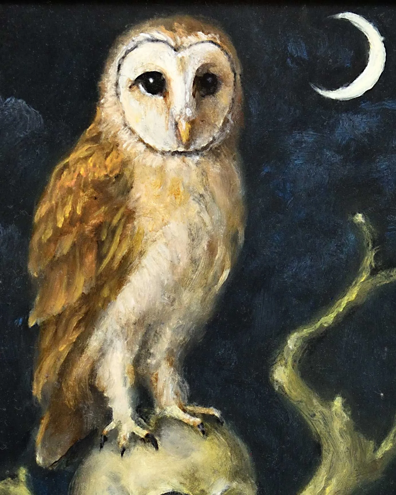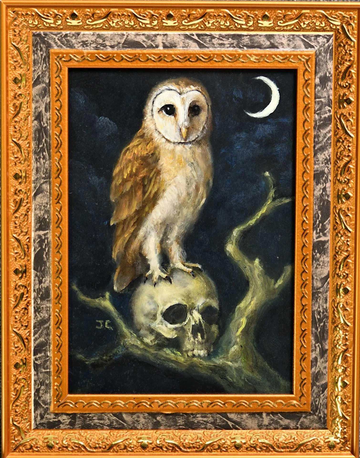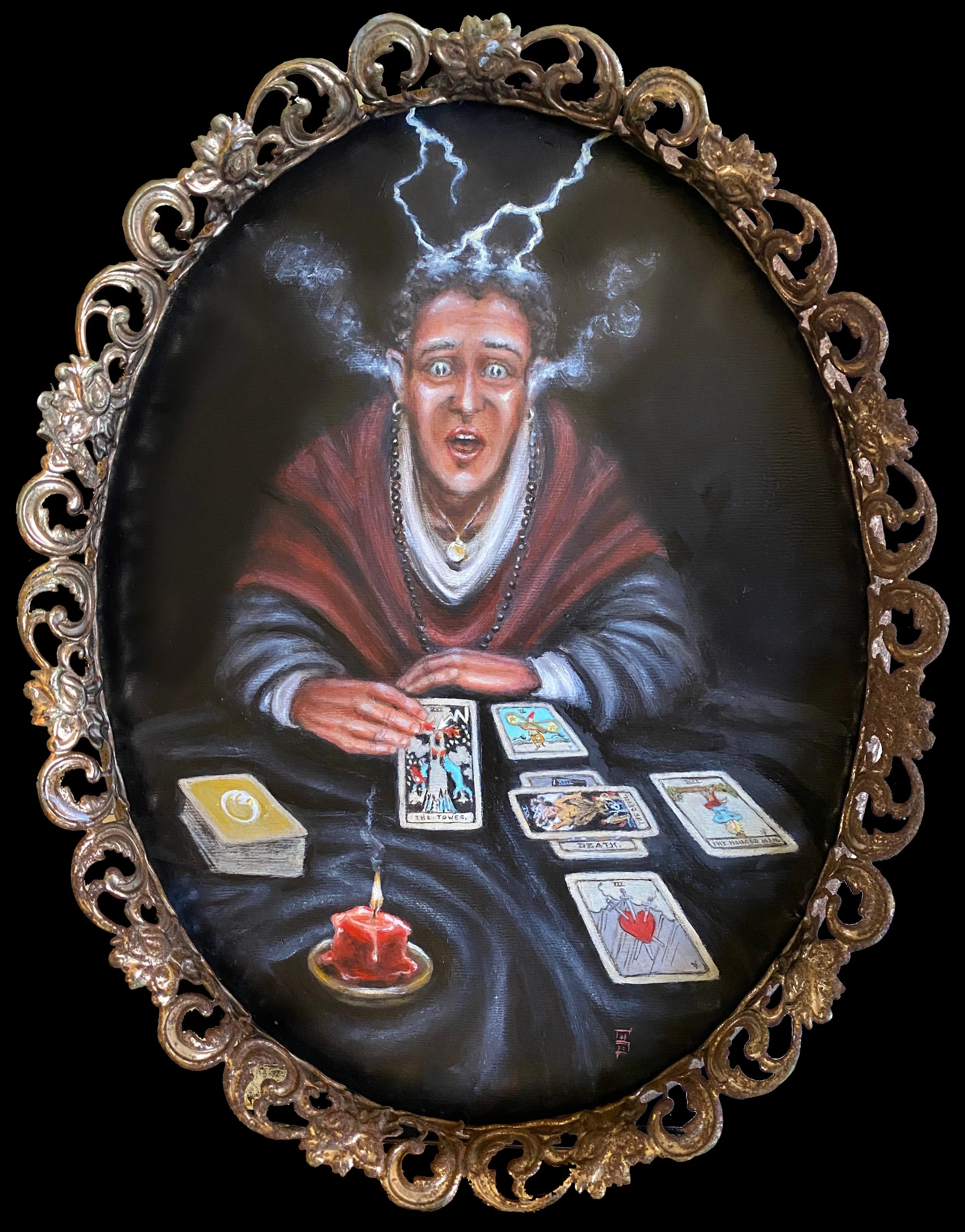 The Warning, 2025. Oil on board, 9 x 12” including vintage frame, $400.00