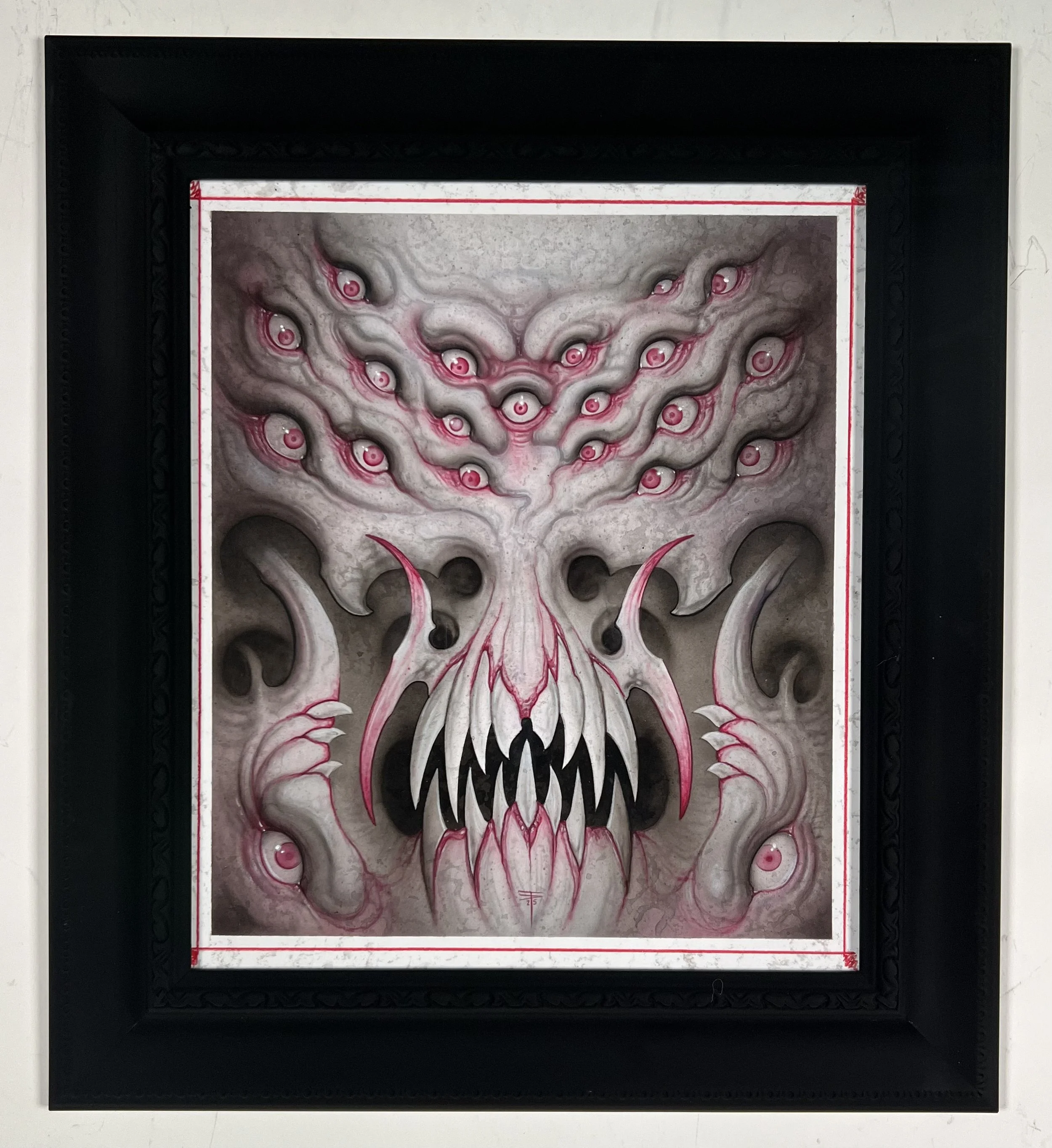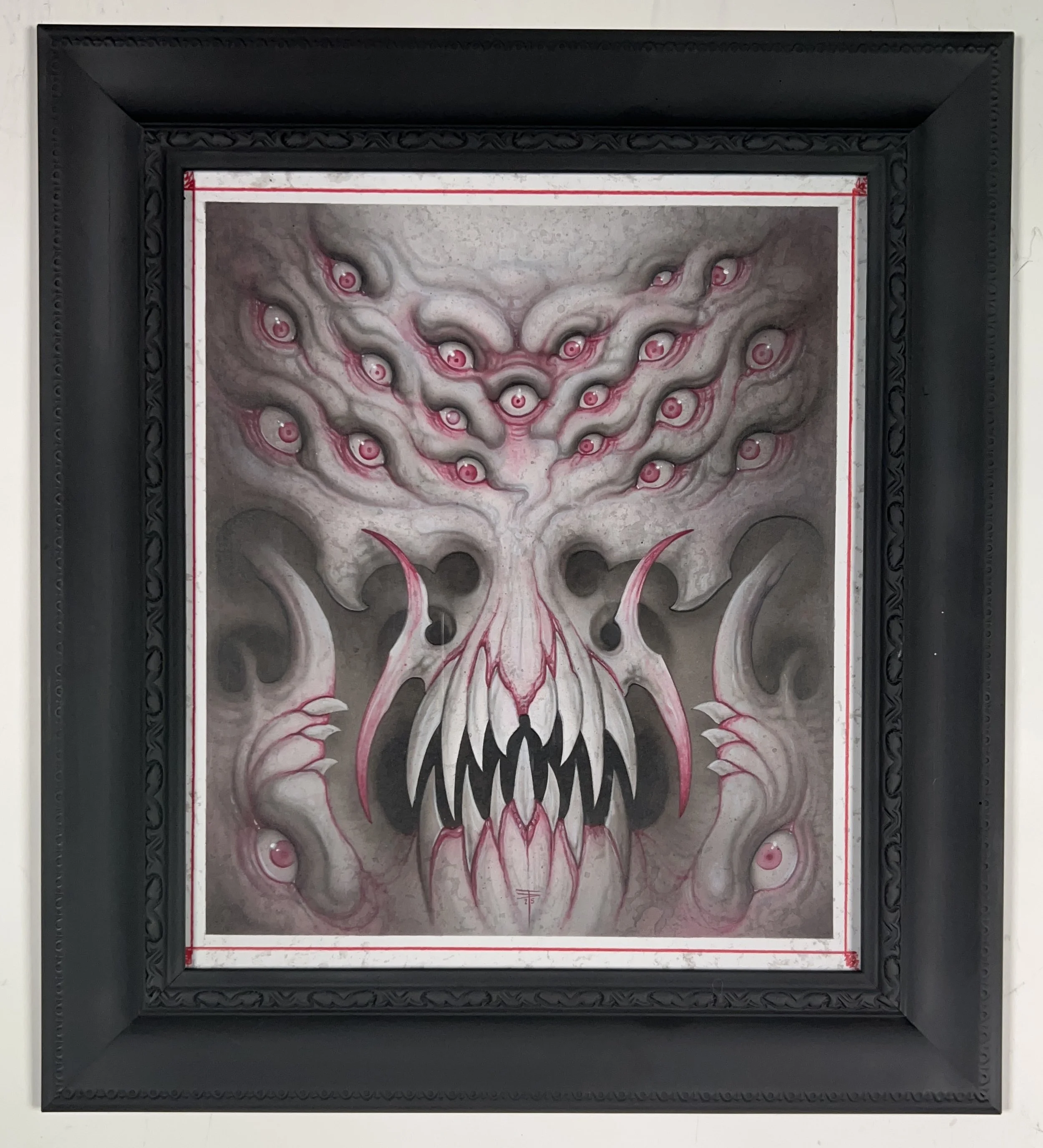 eyebio, 2025. airbrush and color pencil, 12x14”, Frame: 17x19.25” $200