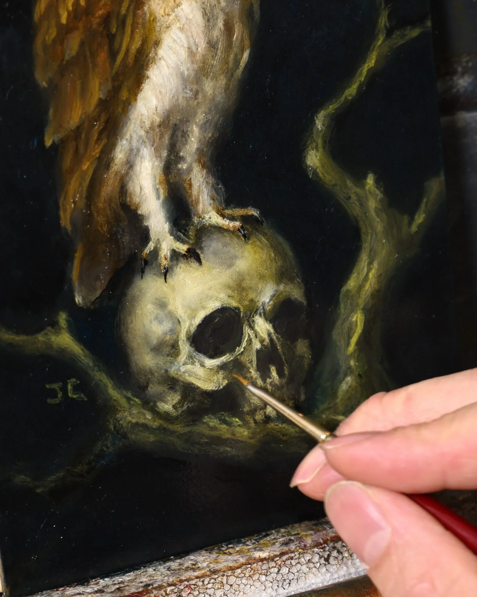 Premonition, 2025. oil on illustration board, 11x15" (with a 1" border), $650
