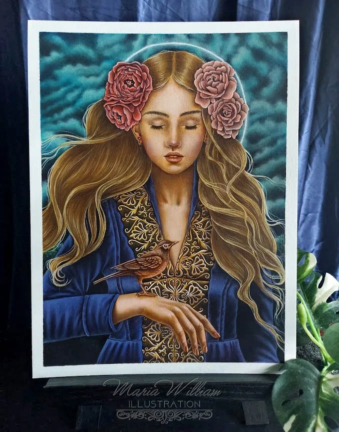 Note from artist: It is still drying, but will be varnished once dry. It doesn't need a frame as it is a half inch panel with painted sides.