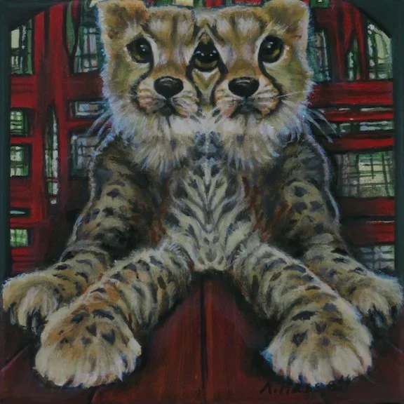 Funhouse Cheetah, 2025. Acrylic on canvas, 6” x 6”, $175